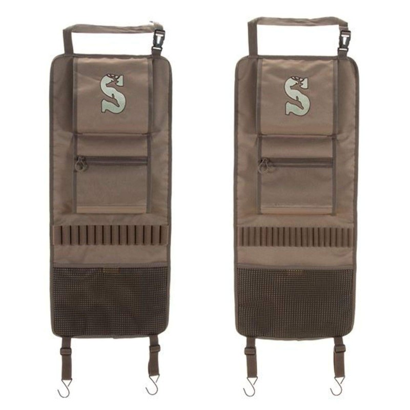 - One seat back organizer has shotshell loops and the other features rifle-cartridge loops