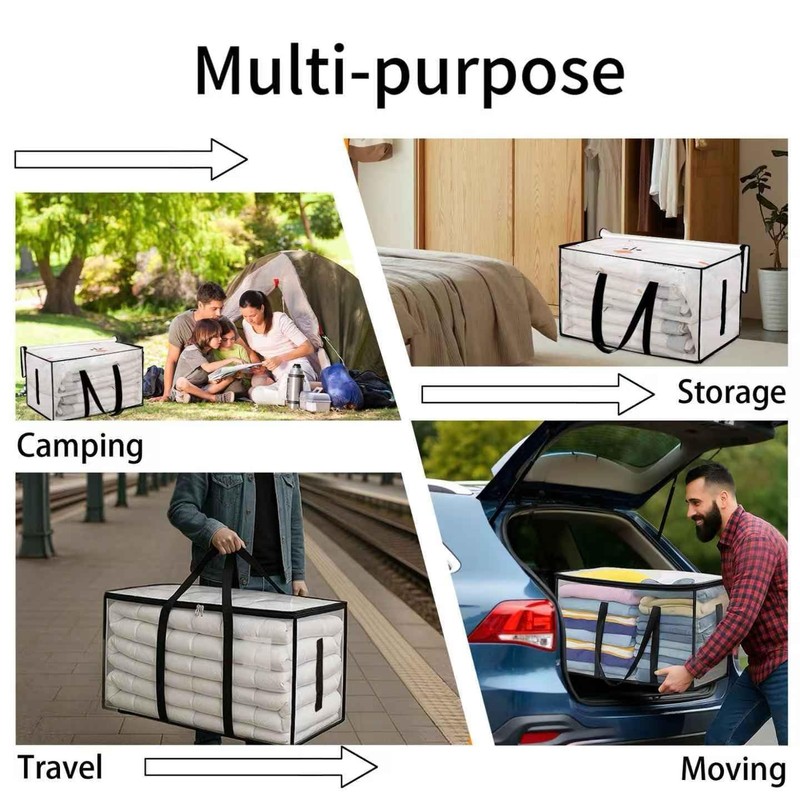 SummitFlare Extra Large Heavy Duty Moving Bags - Waterproof Storage Totes with Reinforced Handles & Zippers, Foldable for College Dorm Essentials, Clothes Storage & Travel (4-Pack Clear)