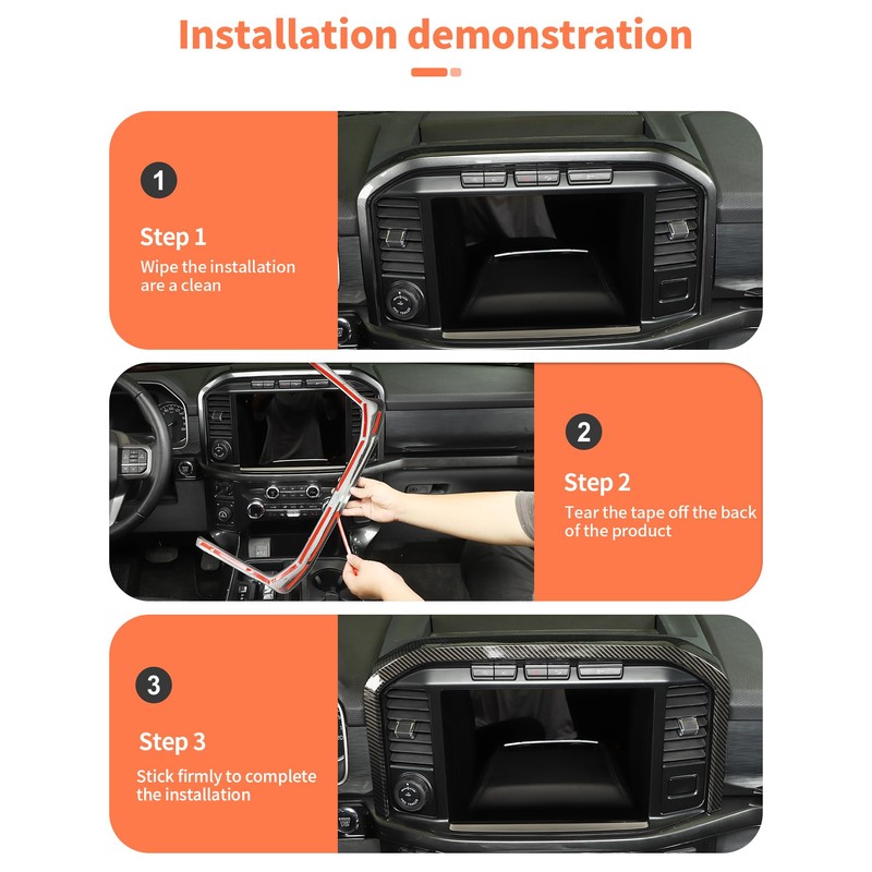 • 3. Enhance Interior Aesthetics: The carbon fiber finish adds a touch of luxury and sportiness to the front center control navigation area of the Ford F150. It covers the original surface, highlights the details of the control panel, elevates the overall visual appeal of the cabin, and makes the interior more attractive.
