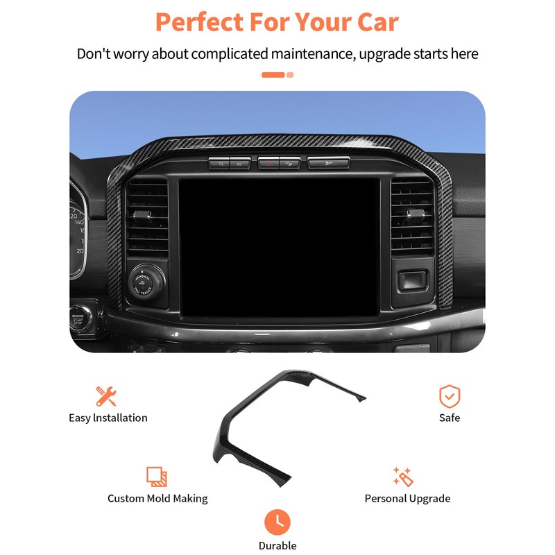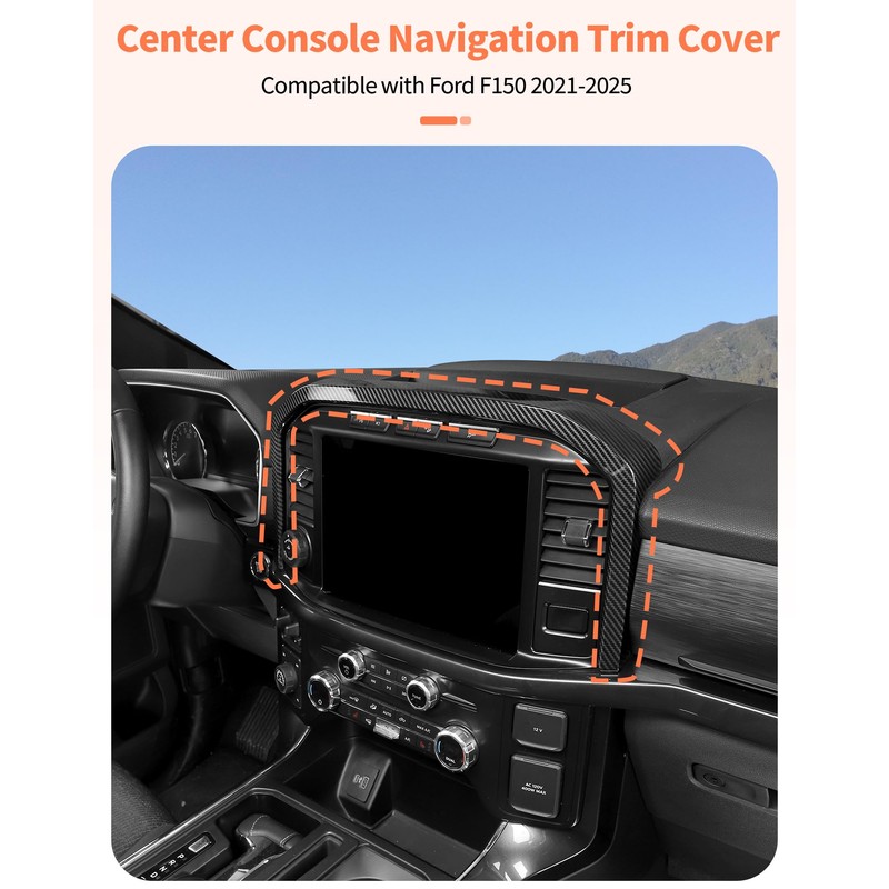 • 1. Precise Fit for Target Models: This front center control navigation large trim frame is fit for Ford F150 models from 2021 to 2025. It accurately matches the contours and dimensions of the original center control area, ensuring a seamless fit without any modifications, perfectly integrating with the vehicle's interior.
