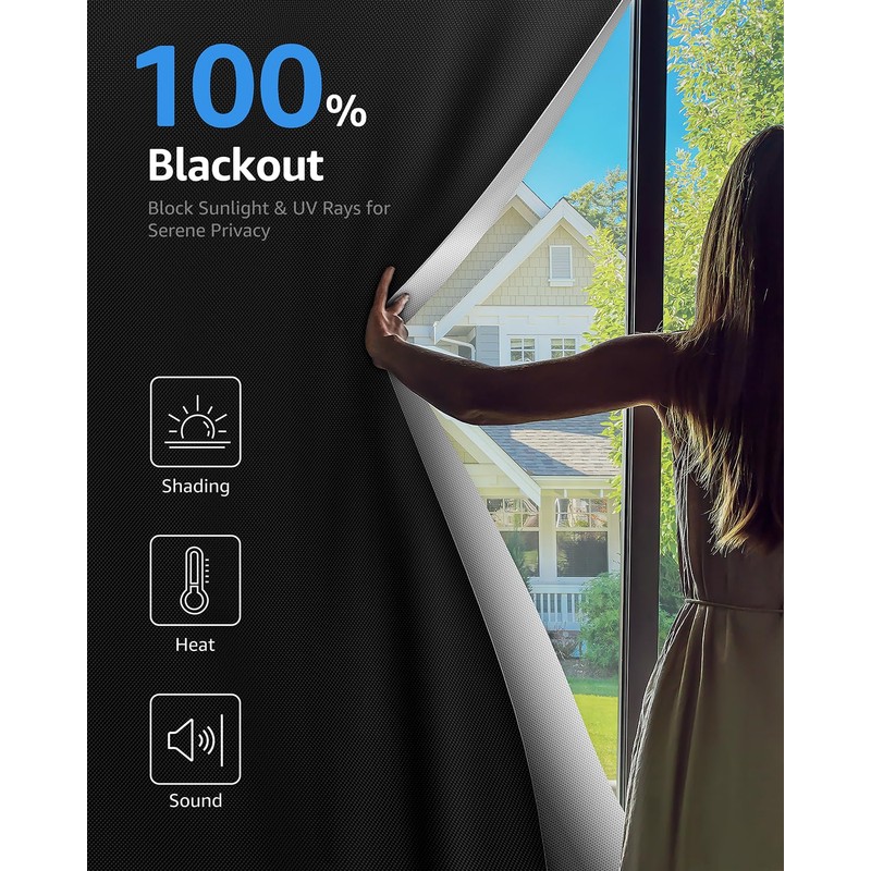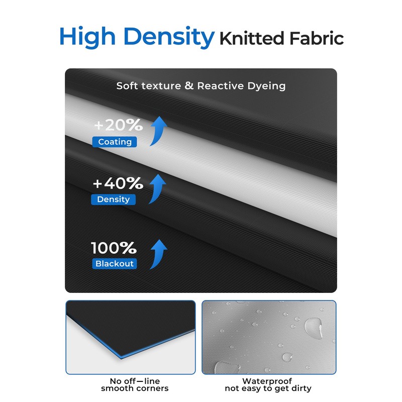 - Enhanced the density of the front black polyester fabric and the back silver UV-reflective layer of the blackout window cover,elevating the insulation,blackout,and privacy experience for users to a higher level