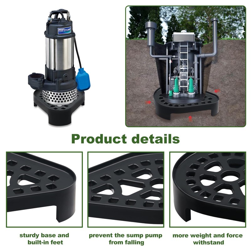 - Product Function:The sump pump stand is more resistant to damage and corrosion than bricks, and by raising the pump height to prevent sediment buildup and clogging, the sump pump stand ensures optimal performance in your basement, pool or garden pond.