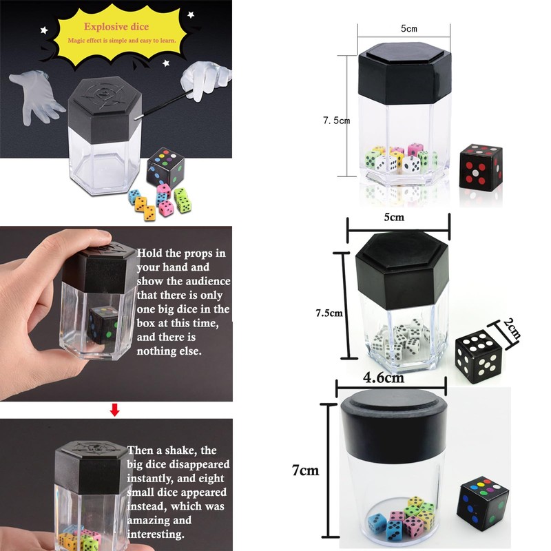 sumrica Magic 3 Pieces Explode Explosion Dice Easy Magic Tricks for Kids Magic Prop Novelty Funny Toy Close-up Performance Joke Prank Toy(Black 7.5cm x 5cm)