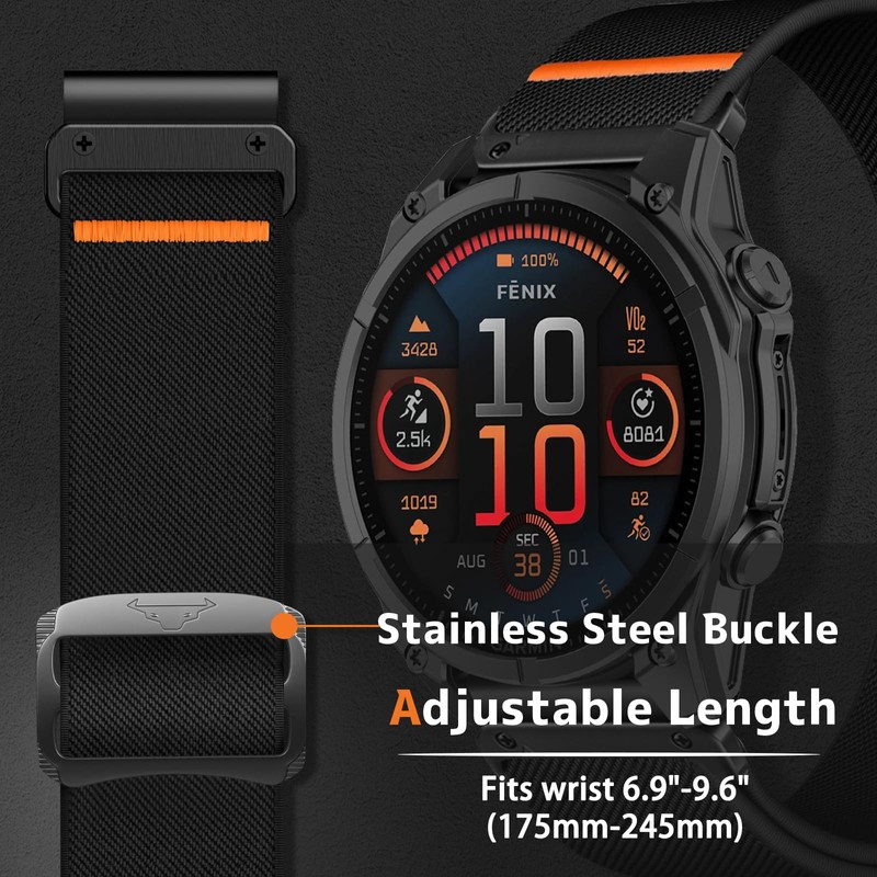 - Compatible models: 22 mm QuickFit elastic nylon strap for Garmin Fenix E/Fenix 8/8 Solar 47 mm/Fenix 7 Pro Solar/Fenix 7 Pro Sapphire Solar/Fenix 7 Solar/Fenix 7/Fenix 6/Fenix 6 Pro/Fenix 6 Solar/Fenix 6 Pro Solar/Fenix 6 Sapphire/Fenix 5 Plus/Plus/Fenix 5 Sapphire/Epix (Gen 1&2)/Epix Pro (Gen 1&2) 47 mm/Forerunner 965/955/955 Solar/945/935/745/Instinct/Instinct 2/Instinct 2 Solar/Descent G1/Approach S70 47 mm/S62/S60, Compatible with all QuickFit 22mm Smartwatches