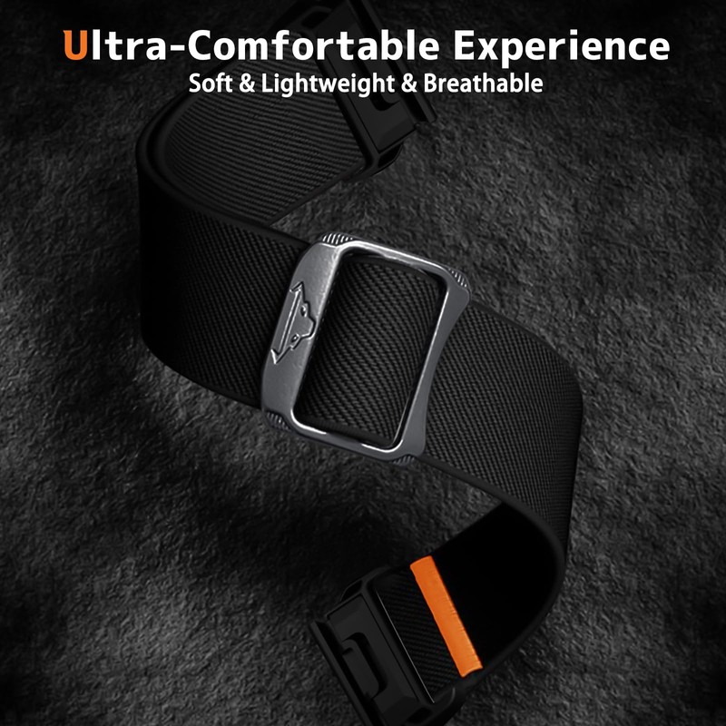 - Soft, comfortable material: the sport solo loop nylon strap is made of soft and elastic nylon material, which is breathable, sweat-proof and lightweight. Provides a soft, textured feel and both sweat and water resistant. No more allergies
