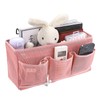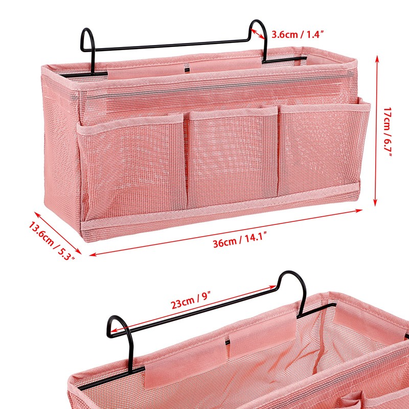 SUMTree Hanging Bedside Organiser, 4 Pockets, Mesh Storage Bag, Bed Basket and Hooks for Towels, Phone, Pens, Remote Control (Pink)