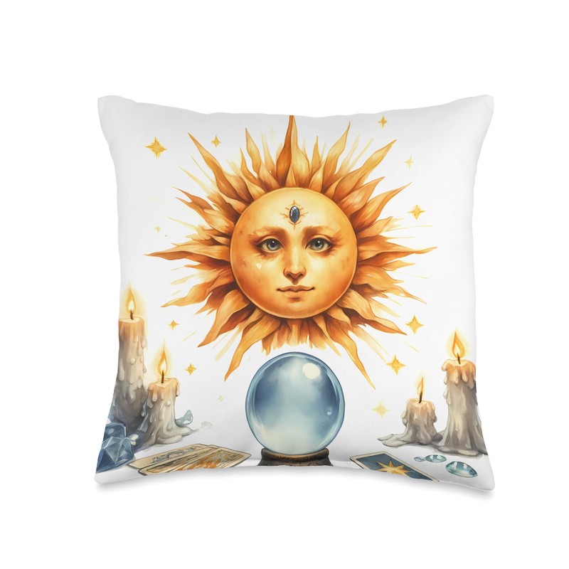 Sun As Mystical Seer Gazing Into Magic Sphere. Tarot Candles Throw Pillow