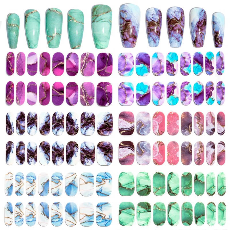 Sun&Beam Nails ネイルシール ジェルネイルシール 手用 貼るだけ 人気 かわいい おしゃれ デザイン ネイル シール フルカバー 付け爪 セルフネイル 長持ち はがせるジェルネイル 6枚 セット (#2 マーブル)