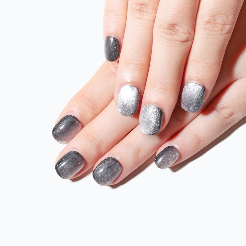 Sun&Beam Nails Handmade Press On Short Round with Silvern Black Cat Eye Design Charm Cute False Nail Tips 10 Pcs (#107 XS)