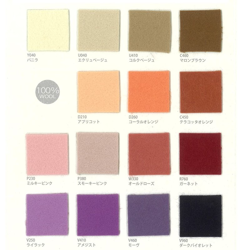 - 100% wool felt with a warm texture and sturdy texture. Beautiful new colors in all 30 colors are made in Japan