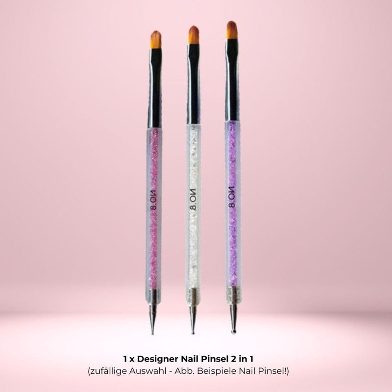 - Inklusive 2in1 Gelpinsel & Dotting Tool – Kombi-Werkzeug mit hochwertigem Gelpinsel (Rotmarderhaar, Größe 8, rund) und feinem Spot Swirl Dotting Tool für präzise Nailart, French Design oder punktgenaue Applikationen.