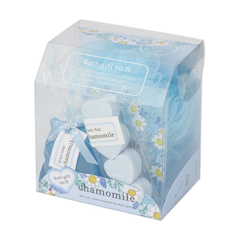 Sun Herb Bath Gift No.75 Chamomile (Pit Plastic Bath Set with Bath Items and Sponge, Gentle Sweet Scent)