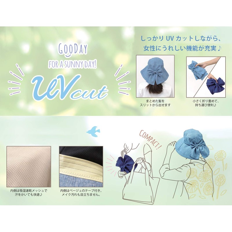 Sun Hertiness DUV-02-4 Denim-style Actress Hat, White, Head Circumference: 22.4 - 23.6 inches (57 - 60 cm), UV Protection, Foldable,