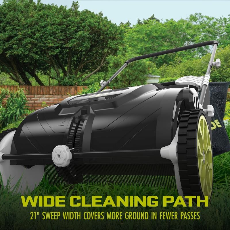 - Keep your yard neat and tidy with the Sun Joe Manual Leaf Sweeper, featuring a wide 21-inch cleaning path and a large 22-gallon collection bin for fast, efficient leaf and debris cleanup. Designed with an adjustable working height from -0.4 in. to 0.6 in. and a comfortable 45° handle angle, this sweeper offers customizable operation for various surfaces and user preferences. Lightweight at just 13.9 lbs and compact in design, it’s easy to maneuver and store—perfect for maintaining patios, driveways, sidewalks, and small lawns without gas, cords, or batteries. • WIDE CLEANING PATH: 21-inch sweep width covers more ground in fewer passes • LARGE COLLECTION BIN: 22-gallon (84 L) bag captures leaves, grass clippings, and debris • ADJUSTABLE HEIGHT: Working height ranges from -0.4 in. to 0.6 in. for a customized sweep • COMFORTABLE HANDLE ANGLE: 45° handle design reduces strain during use • LIGHTWEIGHT DESIGN: Weighs just 13.9 lbs for easy maneuverability and storage • NO GAS OR CORDS: Manual operation offers eco-friendly cleanup with no fumes or power needed • COMPACT STORAGE: Slim frame fits easily in sheds or garages when not in use