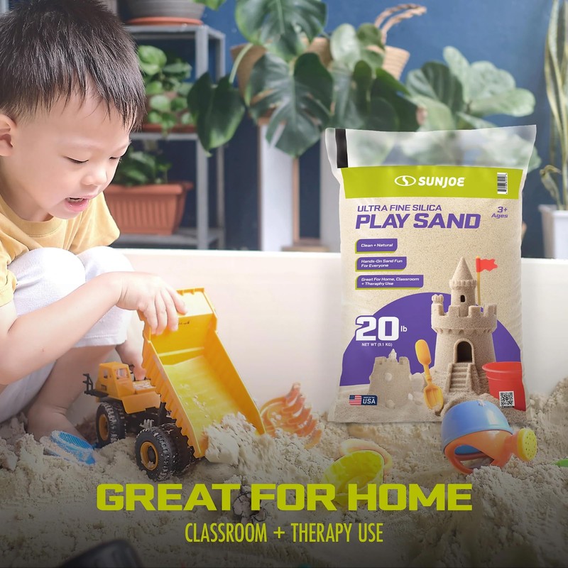 Sun Joe Ultra Fine Silica Play Sand for Sandboxes, Sensory Tables, Gardens, Weighted Toys & Aquariums, for Molding, Digging & Sculpting, 20 Pounds, PLYSAND20