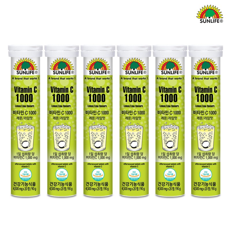 Sun Life [Department Store Store Brand] Sun Life Effervescent Vitamin C 1000 Lemon & Lime Flavor 20 Tablets 6 Bottles