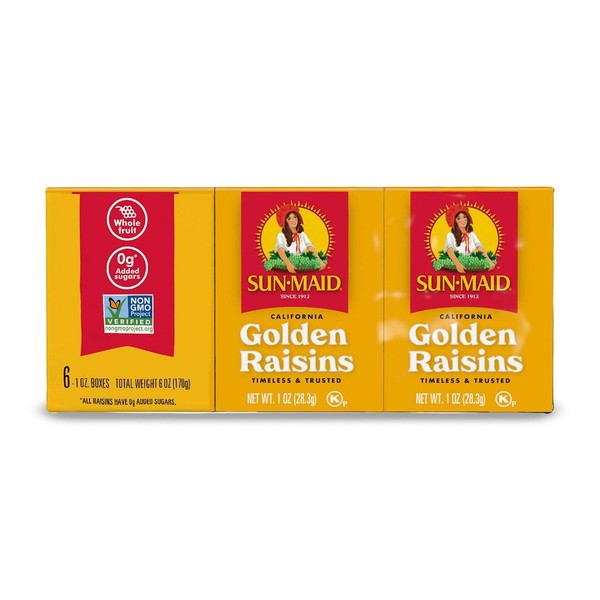 Sun-Maid Natural California Golden Raisins (6 Count , Pack of 1)