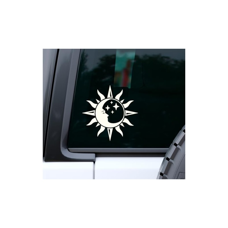 Sun Moon Celestial - Vinyl Decal - Car Phone Helmet - Select Size