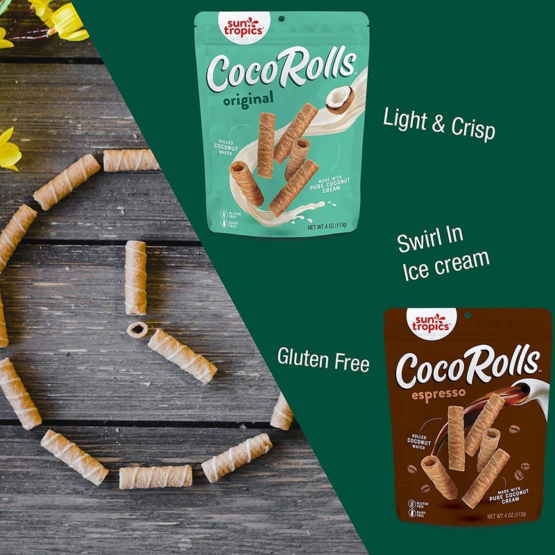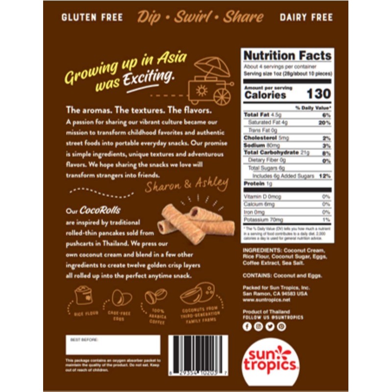 Sun Tropics Non-GMO Rolled Coconut Wafer Rolls 4oz (Espresso) Pack of 3