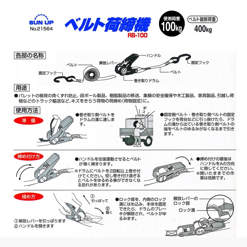 | Size: | 長さ: 5m(固定部0.4m+巻取部4.6m);ベルト幅: 25mm |