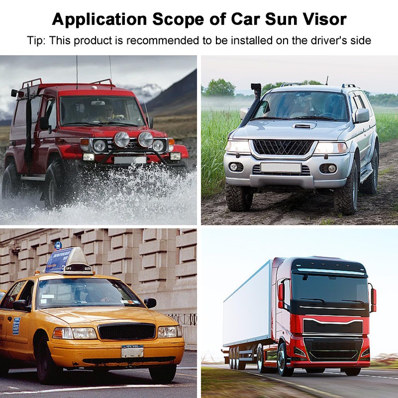 - [Car visor extender] Anti-glare polarized car visor can effectively filter glare and ultraviolet rays, as well as reflective refraction in special environmental periods, thereby reducing eye fatigue, allowing you to focus on the road ahead, and bringing you a safer and more comfortable driving experience