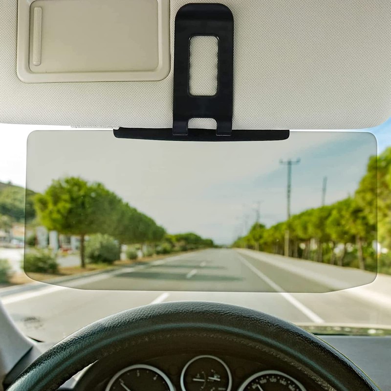 - Car visor extension made of sturdy black plastic clip, transparent coffee and grey polymethyl methacrylate(PMMA) lens, with good glare filter effect, can replace sunglasses, driving glasses.