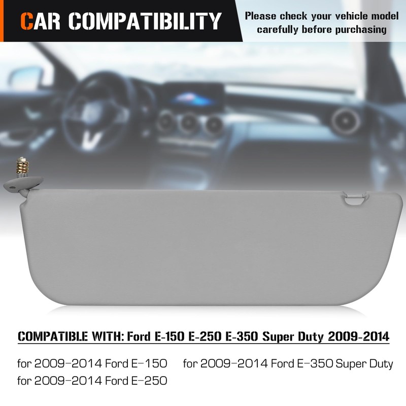 - Left Driver Side Sun Visor Compatible with: for Ford E150 E250 E350 Van 2009 2010 2011 2012 2013 2014