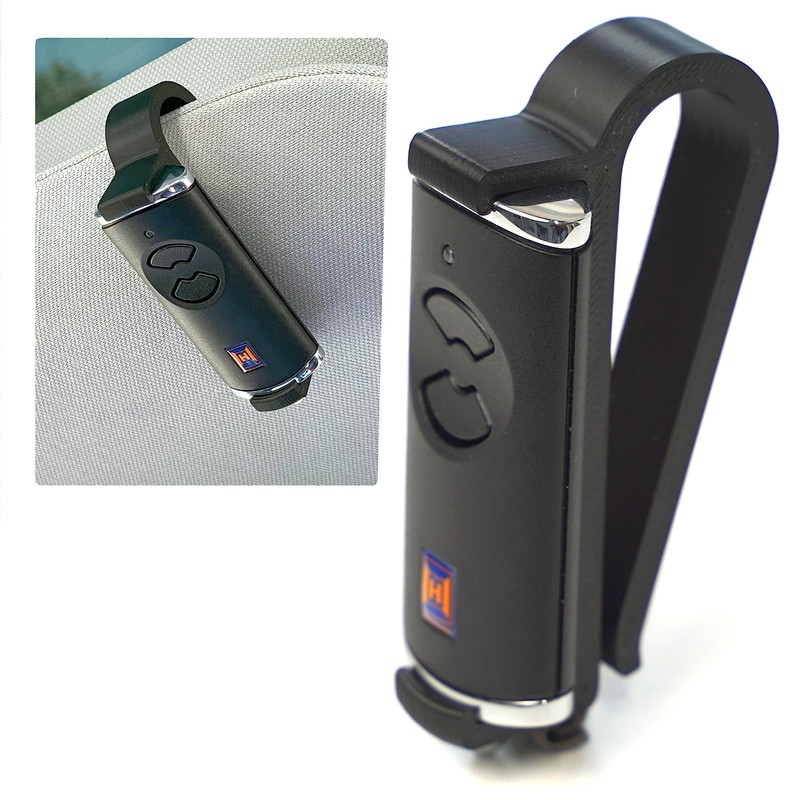 - The sun visor holder is made of high-quality material that provides UV, heat and vibration resistance. You can rest assured that the holder can withstand the stresses of road traffic and provides a secure hold for your handheld transmitter for a long time.