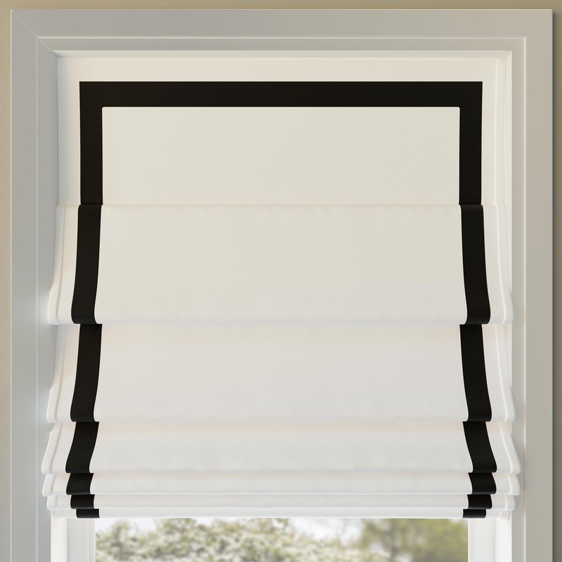 Sun Zero Denna Black Ribbon Border Stripe 100% Blackout Cordless Roman Shade, 35" x 64", Black/White