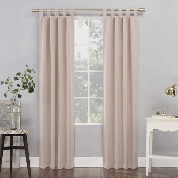 Sun Zero Easton Blackout Tab Top Curtain Panels infuse a modern sophistication into any living space. Equipped with built-in tabs for easy hanging on standard curtain rods up to 1.5" in diameter. Sun Zero Blackout technology blocks out most outside light, offers outside noise reduction by up to 25%, and decreases energy lost through your windows by up to 25%. Comfort is optimized with thermal properties that help keep summer heat and winter chill out of your home. Hang in your living room for enhanced privacy, or in your bedroom for a sounder, more uninterrupted sleep. Sold as individual panels measuring 40" width by 95" length. Measure carefully before selecting your desired size and quantity. Rod not included. Machine wash cold on gentle cycle. Use non-chlorine bleach when needed. Tumble dry on low heat, using a cool iron as needed.