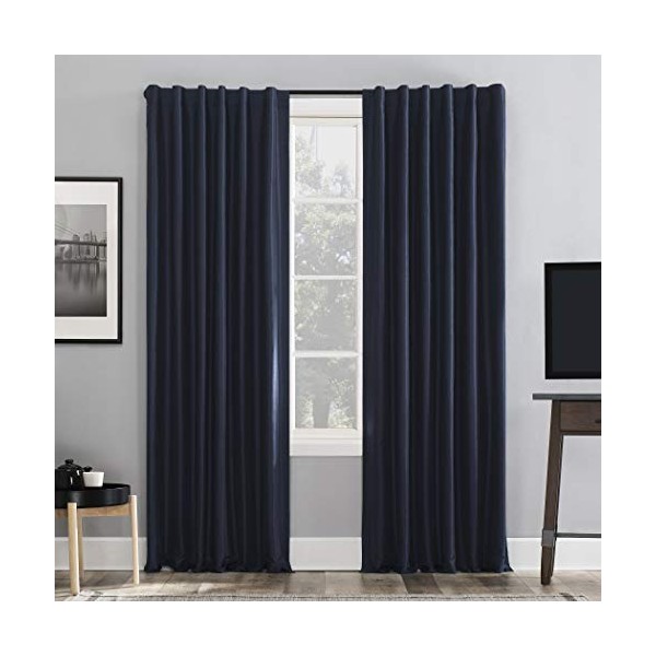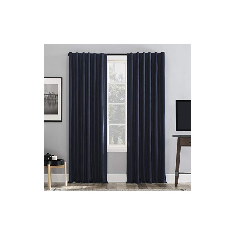 Sun Zero Greyson Faux Dupioni Silk Extreme 100% Blackout Back Tab Curtain Panel, 50" x 63", Navy Blue