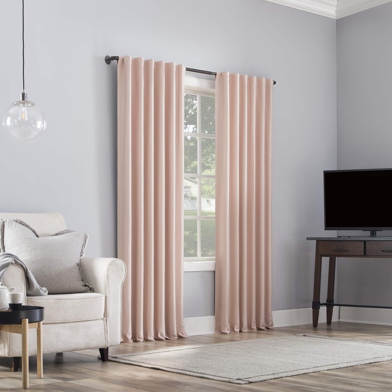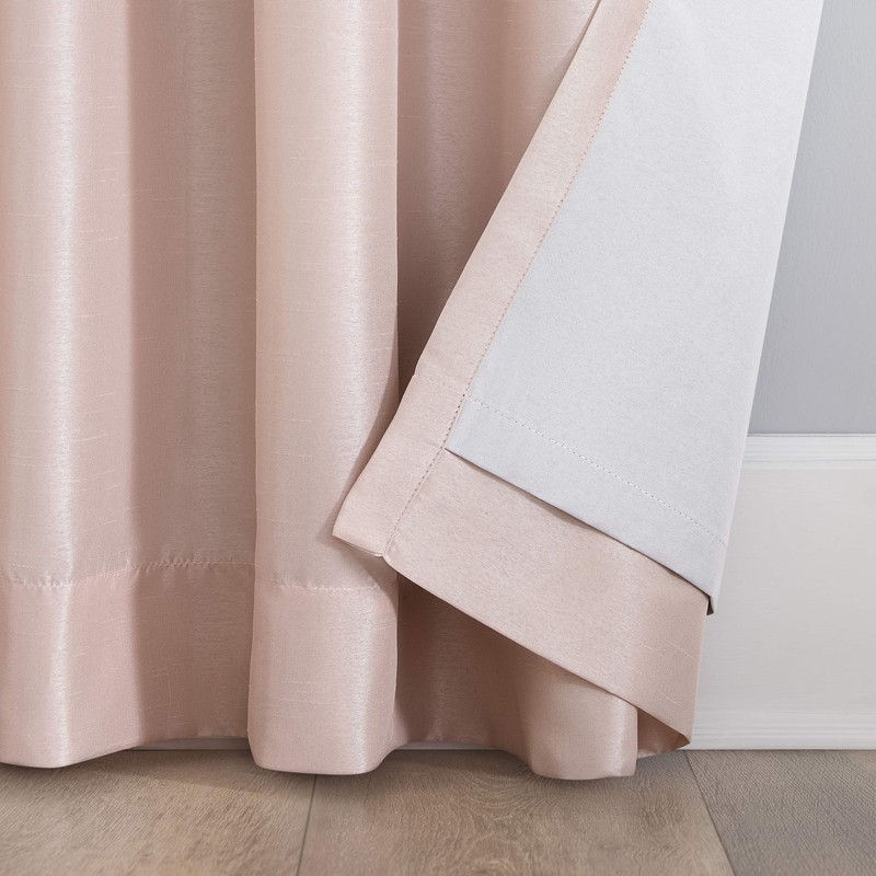 Sun Zero Greyson Faux Dupioni Silk Thermal Extreme Total Blackout Back Tab Curtain Panel, 50" x 63", Blush Pink
