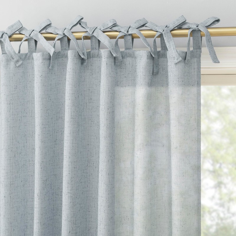 Sun Zero Roxy Generation Slub Texture Tacked Bow Semi-Sheer Tie Top Curtain Panel, 50" x 84", Faded Blue