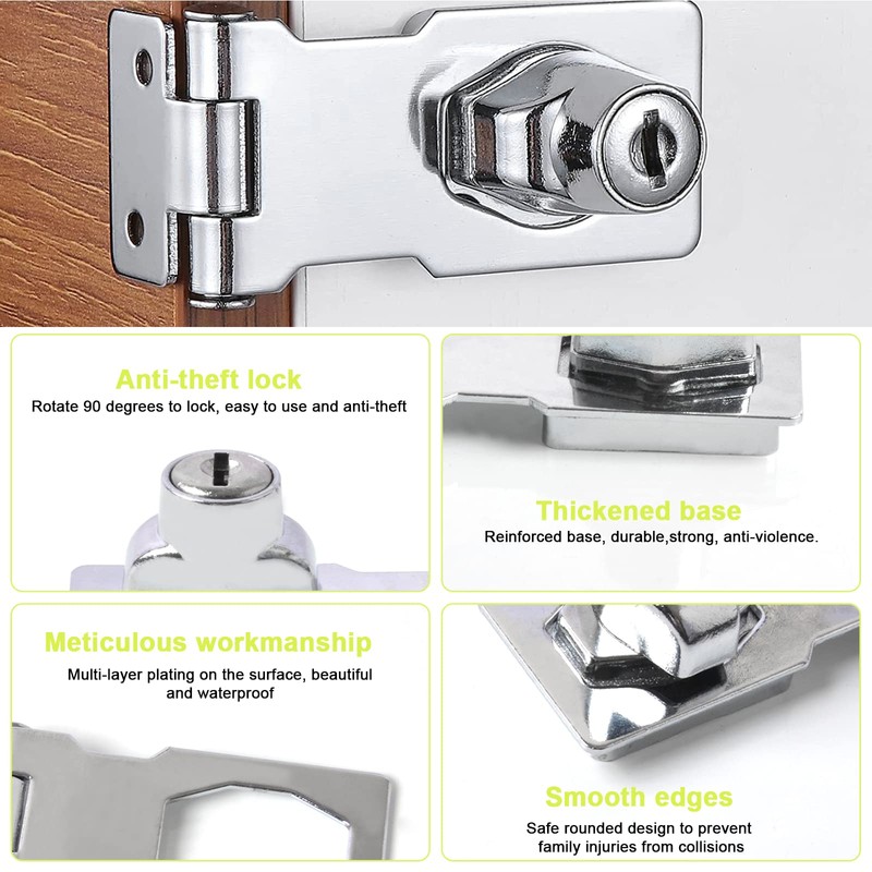 - [Various Uses]: Door latch hasp are very practical and safe, can be used for doors, drawers, cabinets, storage container, wooden boxes, etc. It is widely used in bathrooms, kitchens, industries, hotels, shops and other places.