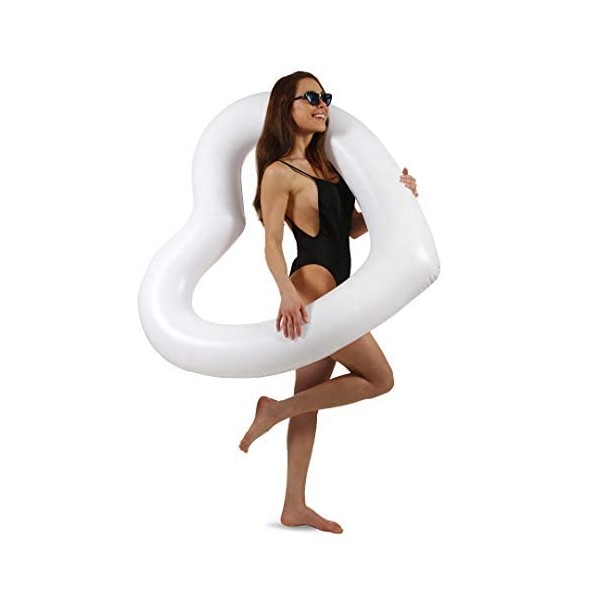 - 【High quality material】:This white heart shaped swimming ring is made of thickened PVC material, with a thickness of 0.25mm, and is resistant to compression and tearing. You can easily resist in water and enjoy water activities freely.