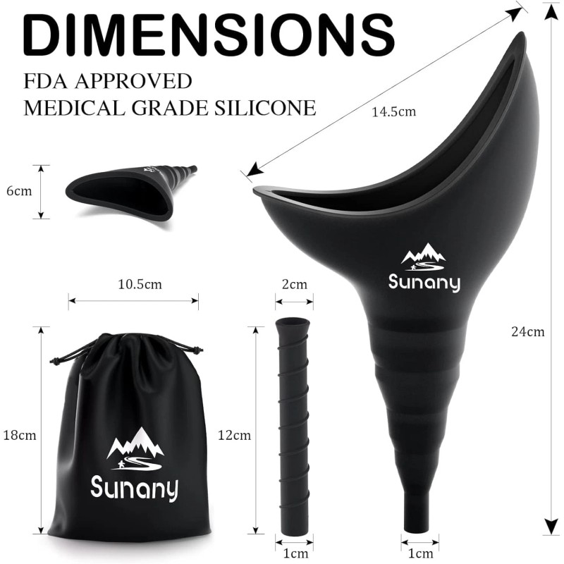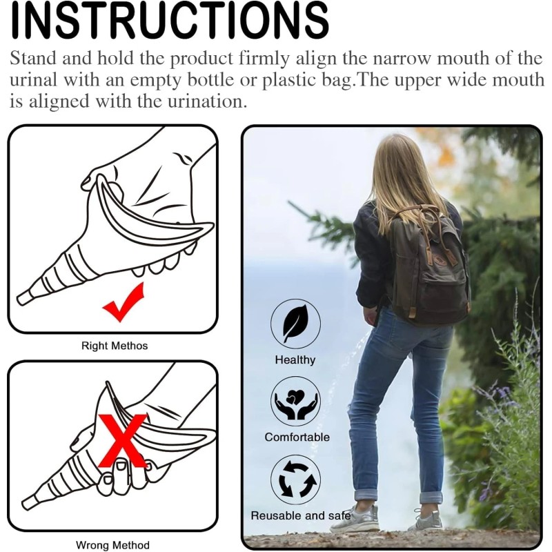 Female urinals——specially made for women Whether you are traveling outdoors or working a female urinals portable, you can achieve physical liberty. You can pee standing up instead of squatting behind bushes, trees, cars or sitting on a dirty toilet. There are many reasons to choose our female urinals: 1.The women pee cup is made of medical grade silicone with excellent flexibility.(It is safe and leakage, good sealing, moisture-proof, no odor soft and durable. Does not irritate the skin.) 2.Foldable extension tube with spiral design(Can be firmly connected with the womens pee funnel. Therefore, the womens urinal funnel can aim more accurately and prevent urine splashing.) 3.Super compact, soft and foldable (The urinal for women is equipped with a special drawstring pocket, you can take it wherever you go. Green and reusable, only need water or soapy water to clean and dry)A good helper in life--pee cup for woman When camping has no toilet available When traffic jams cannot go to the toilet When the toilet space no the plane is narrow When the squat is inconvenient after surgery Late pregnancy squat inconvenient When the public toilet in the mall is too dirtyPlease note: We focus on making the best service and quality products. If you have any questions about the pee for women, please let us know and we will help as soon as possible.