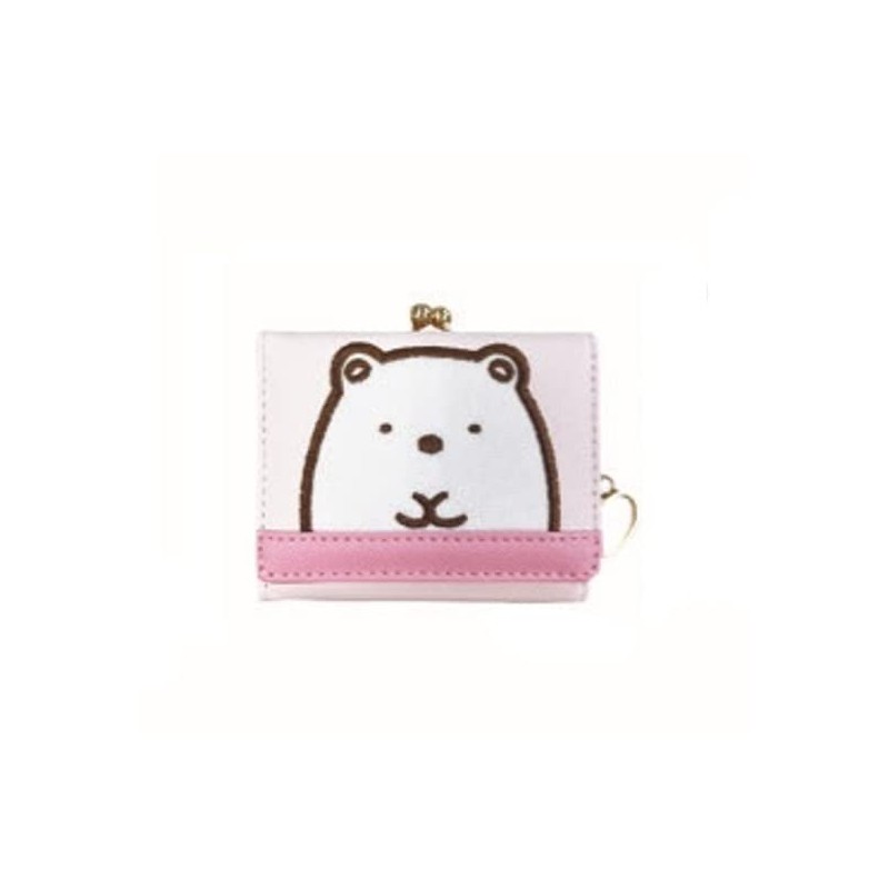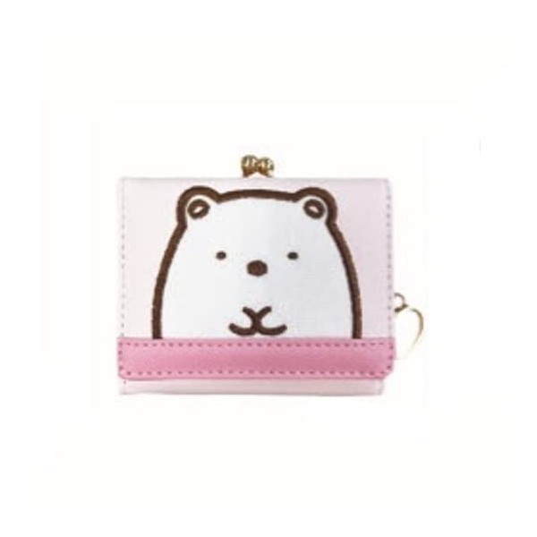 Sunart Sumikko Gurashi 132252 Mini Wallet with Metal Clasp, Shirokuma Face Pattern Patch Series, Coin Purse, Pink
