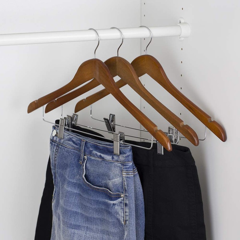 - PERFECT FOR HANGING BOTTOMS: For the jeans, shorts, and skirts that need hanging, look no further than these hangers. They have two clips below for attaching clothes onto securely