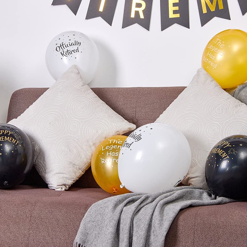 - Design: our black gold and white latex balloons are the perfect relaxed atmosphere-making piece for your party! You can take beautiful and memorable photos, which leave an unforgettable memory for the retiree. Let us enjoy the best retirement party ever!