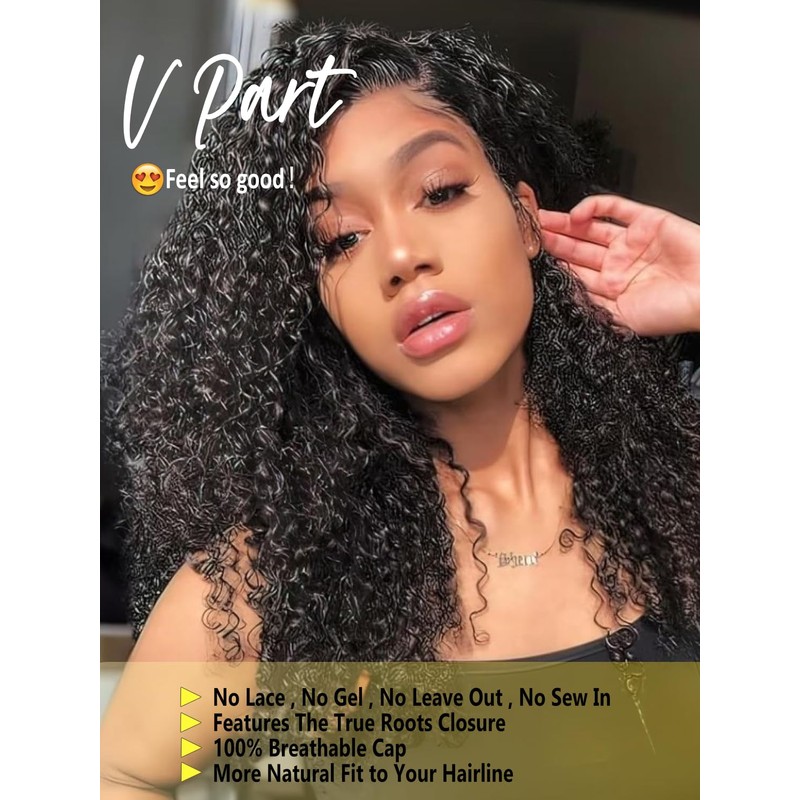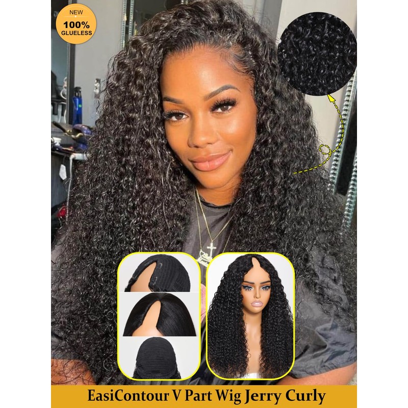 - --Jerry Curly V Part Wig Advantage--V Shape Part Wigs,Bouncy,Comfortable and Breathable. Full Cuticle Aligned, No Tangles & Shedding, Can be Dyed, Curled, Straightened and Permed as You Like