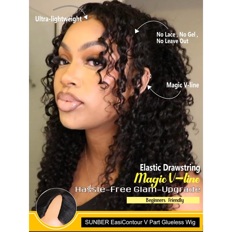 - --Glueless Curly Wigs Feature--The V-shaped cut ensures a natural flow and realistic appearance, ideal for everyday wear without leaving any hair out