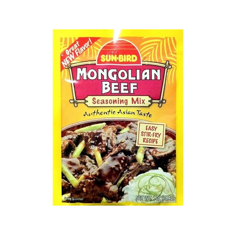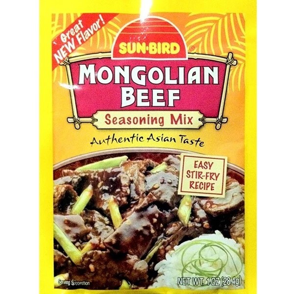 Sunbird Mongolian Beef makes a scrumptious seasoning that is blended to coat meat evenly and served over rice. Stir in green onions if desired.