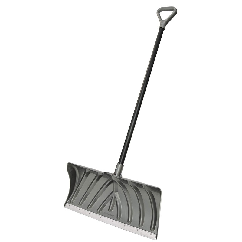 24", gray, Deluxe poly snow Pusher, with galvanized steel wear strip, 24" W x 12" H non stick graphite blade, textured resin coated 1-1/4" diameter steel core R shaft with large D grip, overall length 56".