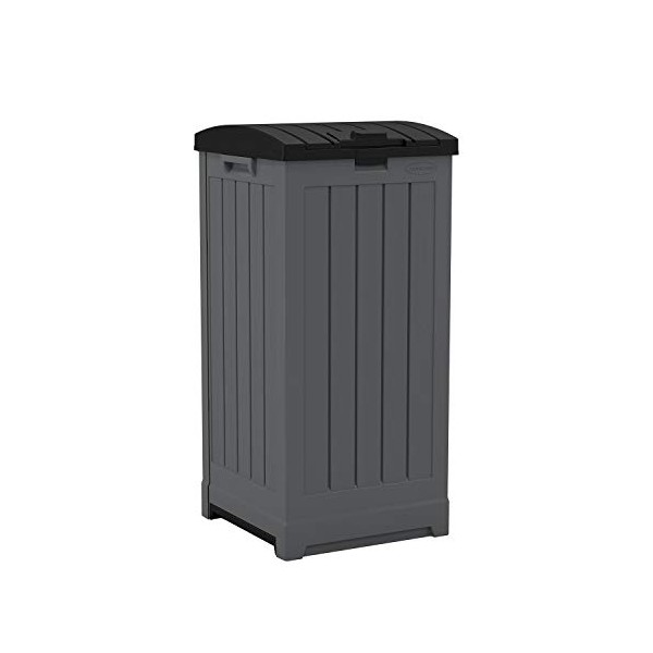 Suncast 39-Gallon Resin Outdoor Hideaway Trash Can with Lid for Backyard, Deck, or Patio, Gray