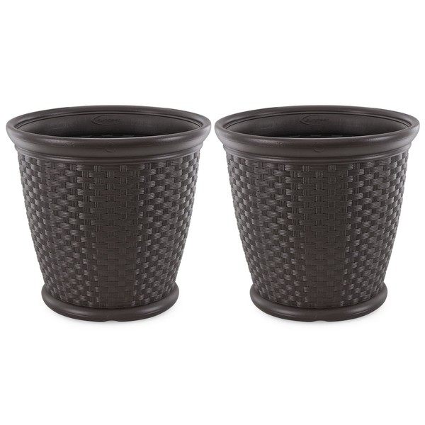 Suncast Sonora 22 Inch Resin Wicker Decorative Garden Planter, Java (2 Pack)