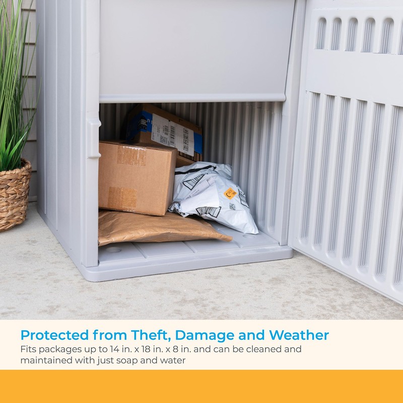- WEATHER RESISTANT: Ensures packages up to 14 in. x 18 in. x 8 in. are kept secure, shielding them from potential theft, accidental damage, and harsh weather conditions; deliveries remain intact and protected during heavy rain, snow, or sun exposure