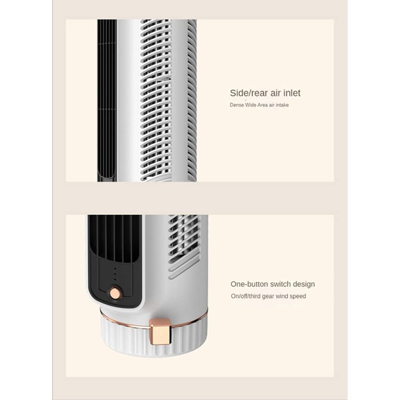 - Multifunctional Desktop Tower Fan: Air-conditioned vortex -flow technology, soft and stable wind, upgraded all-copper brushless motor, noise reduction as low as about 30 decibels. The crescent-shaped wind wheel design can reduce eddy current and make the temperature even and stable.