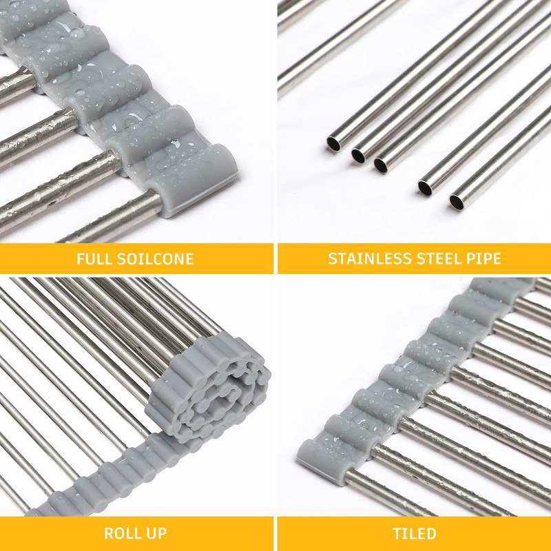 • Safety Material--304 Stainless steel, sofe siIicone edges, BPA-free food grade material sink drying rack is good for people and food, vegetables.