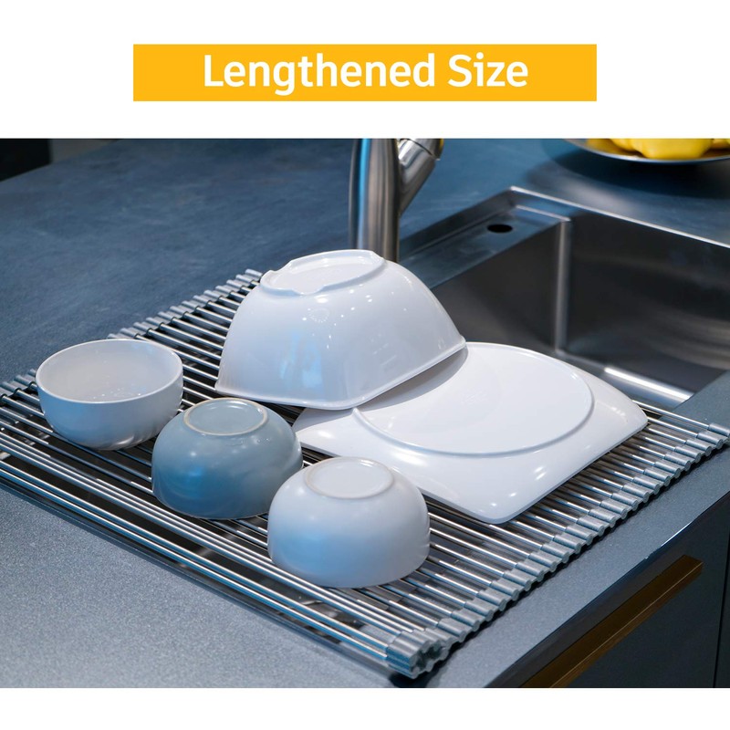 SunCleanse 20.8"x14.2" Roll-Up Dish Drying Rack, Large Over The Sink Multipurpose Kitchen Dish Drainer, Stainless Steel Dish Rack, Grey