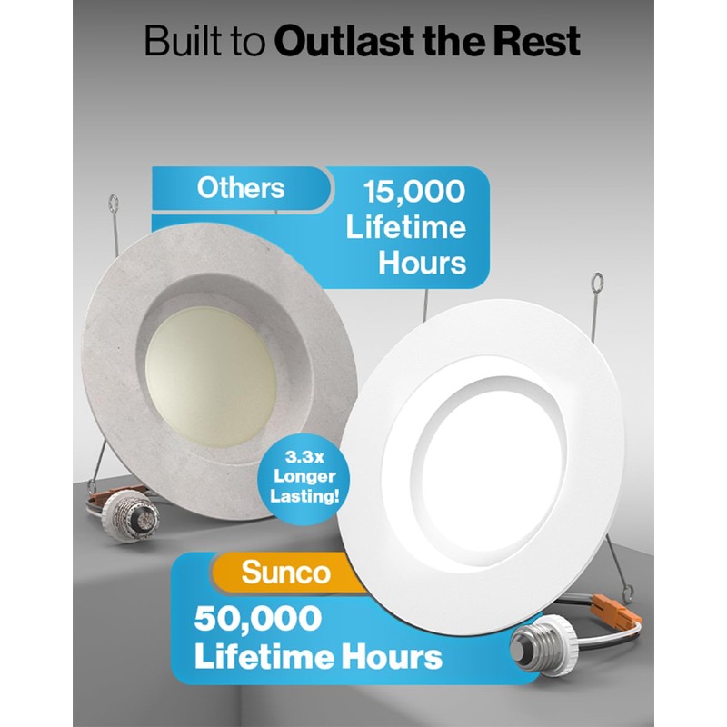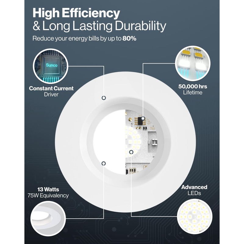 Sunco 12 Pack 6 Inch LED Can Lights, Retrofit Recessed Lighting, Smooth Trim, 965 LM, 13W (75W Equivalent), 4000K Cool White, Dimmable, Damp Rated UL